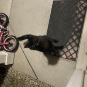 She is a long black haired kitty, with the sweetest personality I’ve ever seen, I found her Friday, and she has been coming back for food, I can tell she is always really hungry