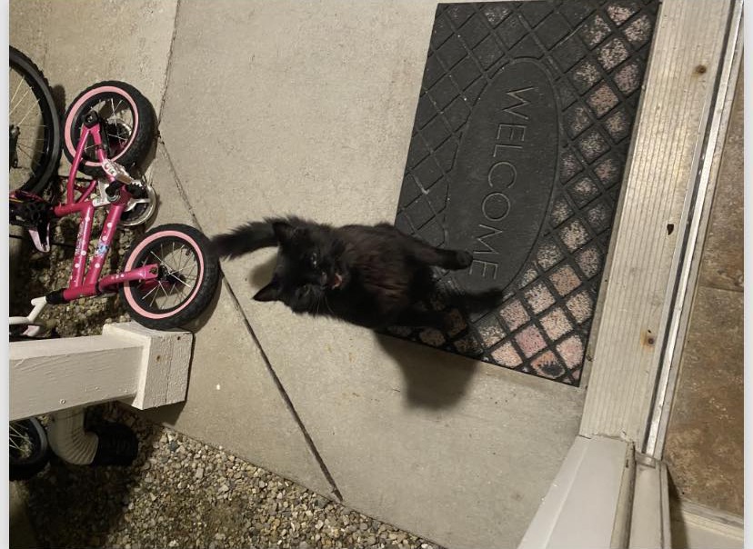 She is a long black haired kitty, with the sweetest personality I’ve ever seen, I found her Friday, and she has been coming back for food, I can tell she is always really hungry