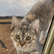 Very small female cat (older kitten?) She’s very friendly. Brown tabby with an orange spot on the top of her head.