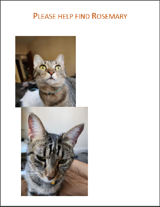 Lost Cat, Alert #64885 rosemary missing near 233 E St Joseph / n delaware, indianapolis46202
