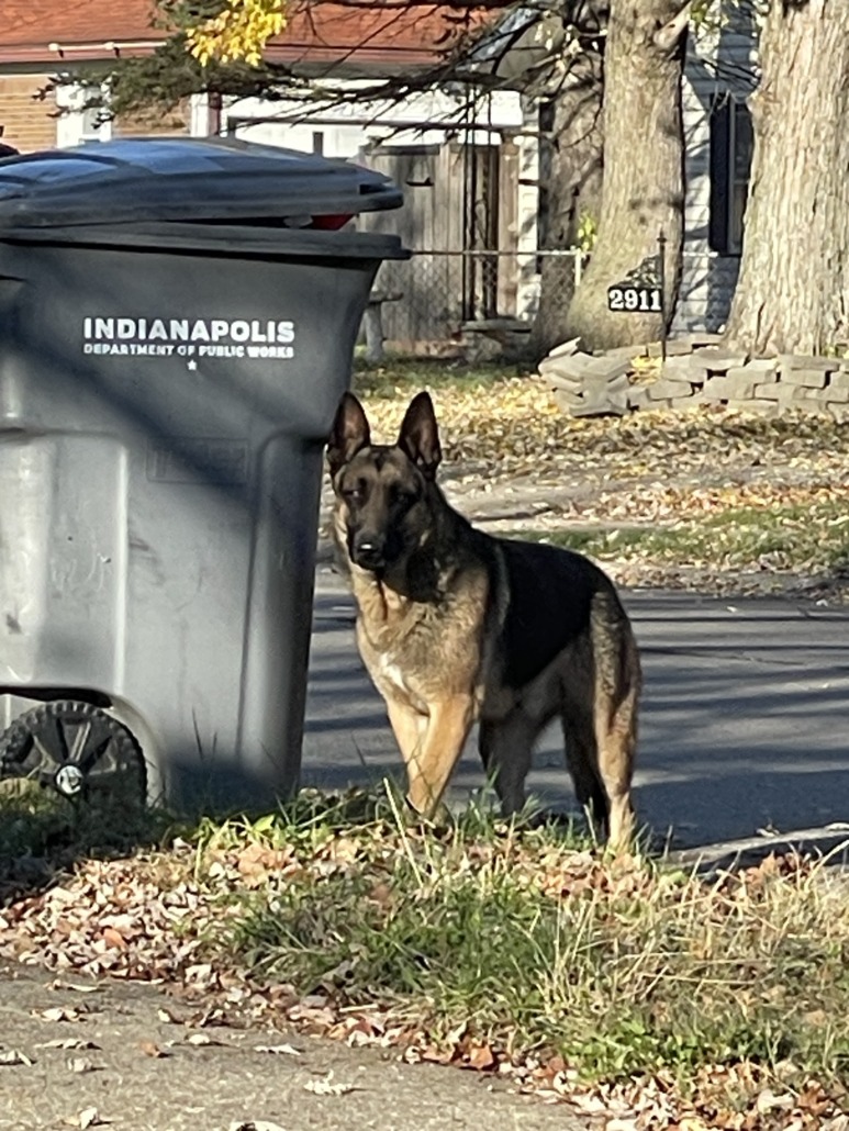 Large German Shepard with black face spotted by Washington Park on the East side of Indy.