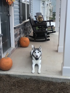 Ashe is an 11 year old Siberian Husky, she is white and black in color. Very friendly. She is an inside dog that sleeps with my 6 year old son. She escaped our fenced in back yard and does have a red collar for our wireless fence, but there are no identifying tags on this collar.