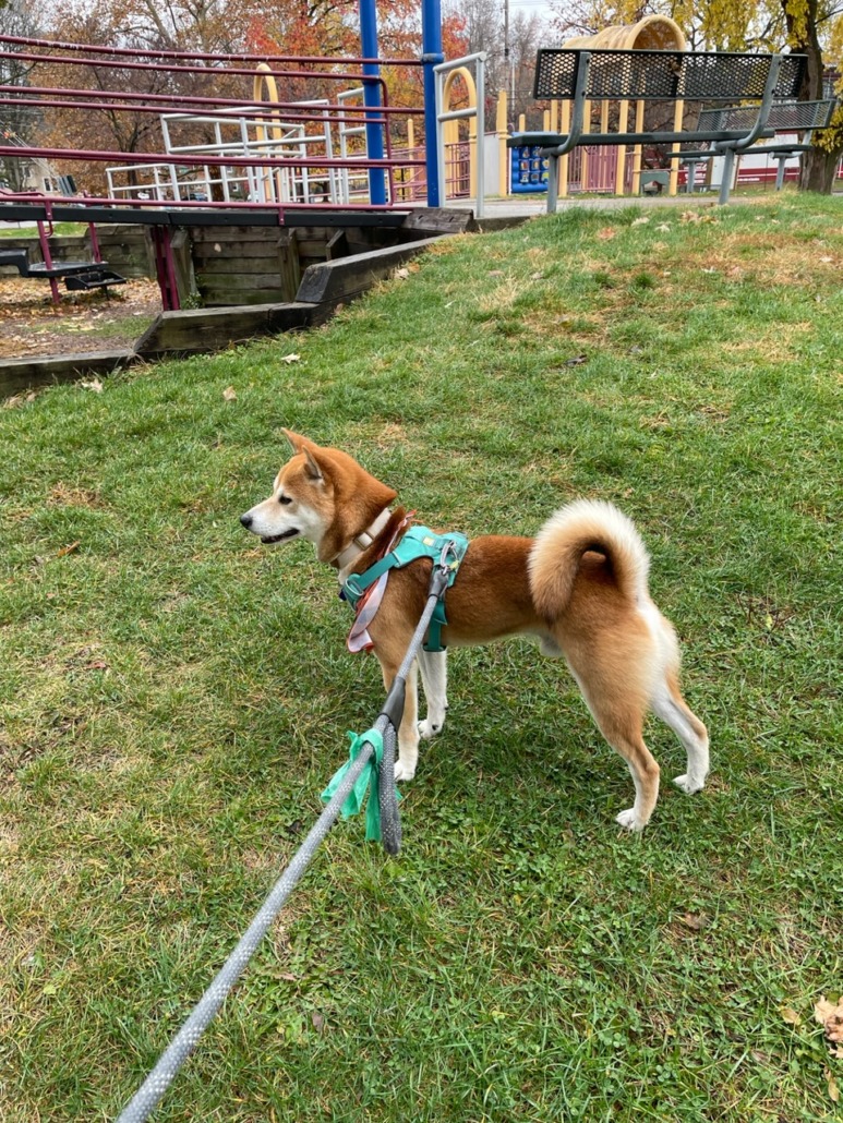Last seen near Watkins Park. Heading east on Fall Creek crossing MLK. Small Shiba Inu. Very friendly.