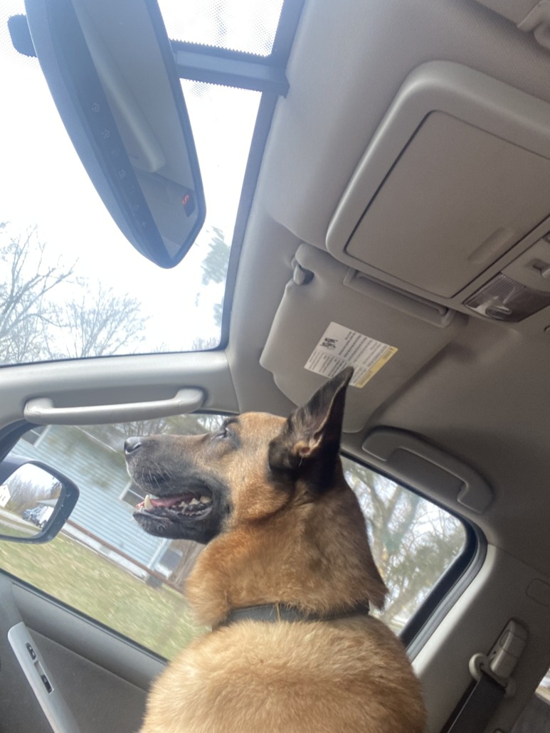 Male German shepherd. No chips blue denim collar. Been hanging out in my yard for two days, broke into my house and let my dogs out.