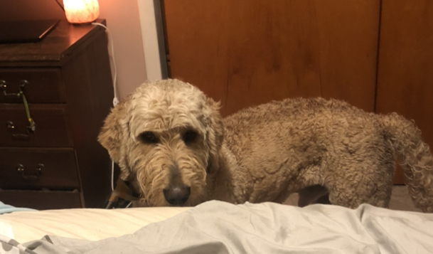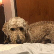 Large doodle found on the corner of S Keystone ave and Carson. He is very sweet and well behaved! Has on a collar and a bandanna (please call to describe bandanna).