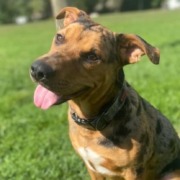 Yasha is a Rottweiler/pitbull mix. He has a black & grey back coat with a brown face and legs with a little white on his chest. he is trained and well mannered, will respond to his name. please text instead of call