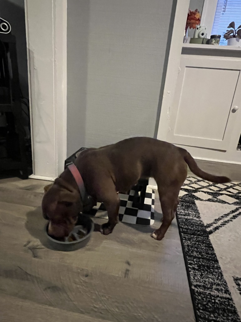 She has on a pinkish collar with no tag. She is very small, super friendly.