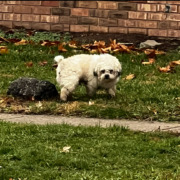Little white dog running around apartment complex very happy, but also will not let me near them. I asked Neighbor outside and he said the dog is always happy. Running around here. I tried to get near him, but couldn’t.