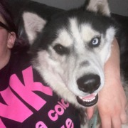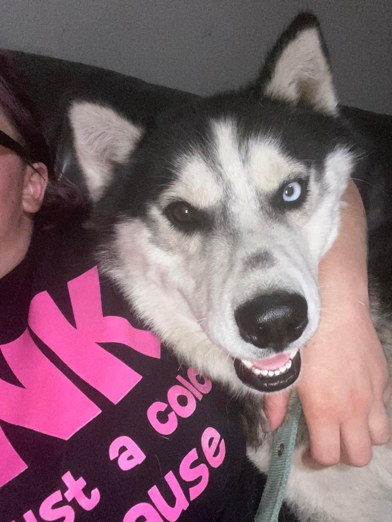 Black and white husky one blue and one brown eye