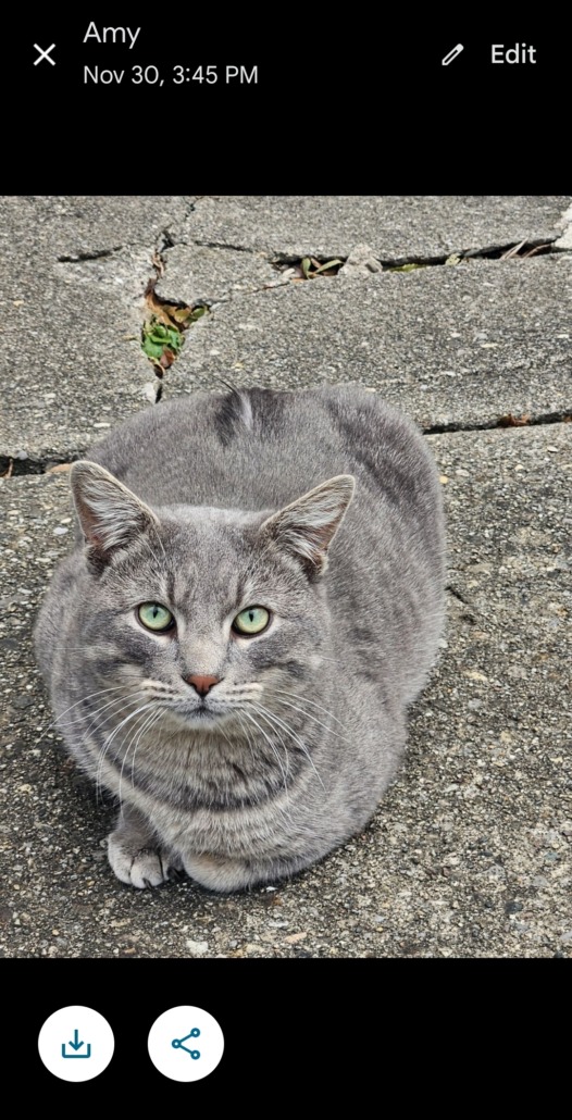 This cat has been hanging around for a few months now and I’m getting worried with the colder months approaching. I still have hope to find his family or a family that would love to open their home to him. He is super friendly and has the prettiest green eyes. He looks to be neutered and is such a chunker