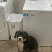 Dog found in one of the laundry room facilities at Life at Harrison Trails Apartments on Jonathan Trace. Black and white with broken off orange collar/leash. Gender and age unknown. Most likely a pitbull. It’s been in the laundry room since 6pm, Dec 10th. Apartment complex was notified but dog is still in laundry room as of 4pm Dec 11th. Dog has been provided with food and water. Microchip status unknown.