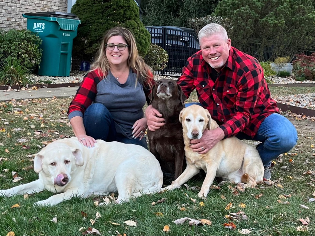 Missing yellow lab, Cooper (see closeup and yellow lab in family photo) near Madison and Loretta (Homecroft area). He is new to the area due to a recent move and is NOT familiar with the area. Does NOT wear a collar, very old guy is nearly blind and mostly deaf. He is microchipped