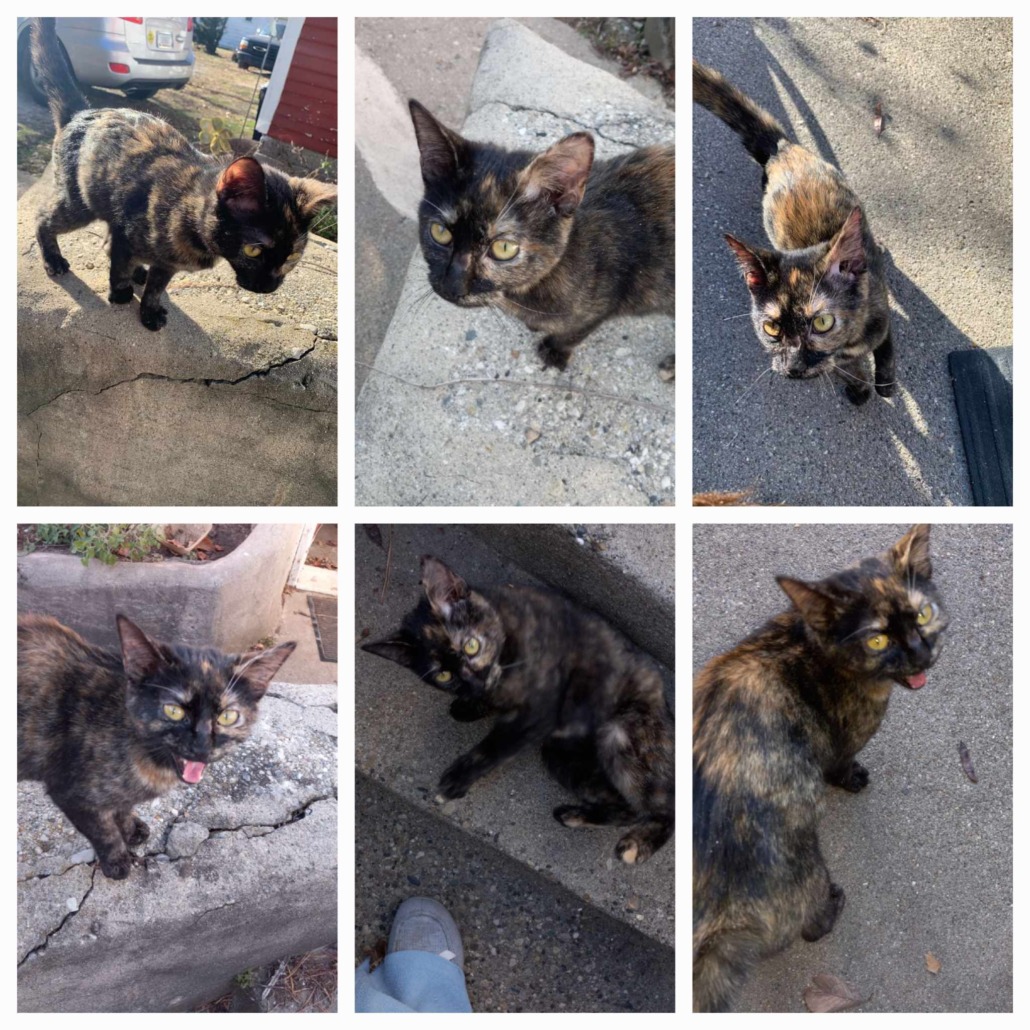 Found this sweet tiny girl 12- 12 – 23 She is very vocal, tortoise coat, and is friendly, Has a big gash on top of her nose, she stayed in our garage last night, but we can’t keep her since we have 4 cats already. She needs to find her home