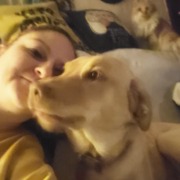 Yellow lab with a pink collar with a tag with her name Samus on it. Friendly still a puppy. 1 year and 3 months old