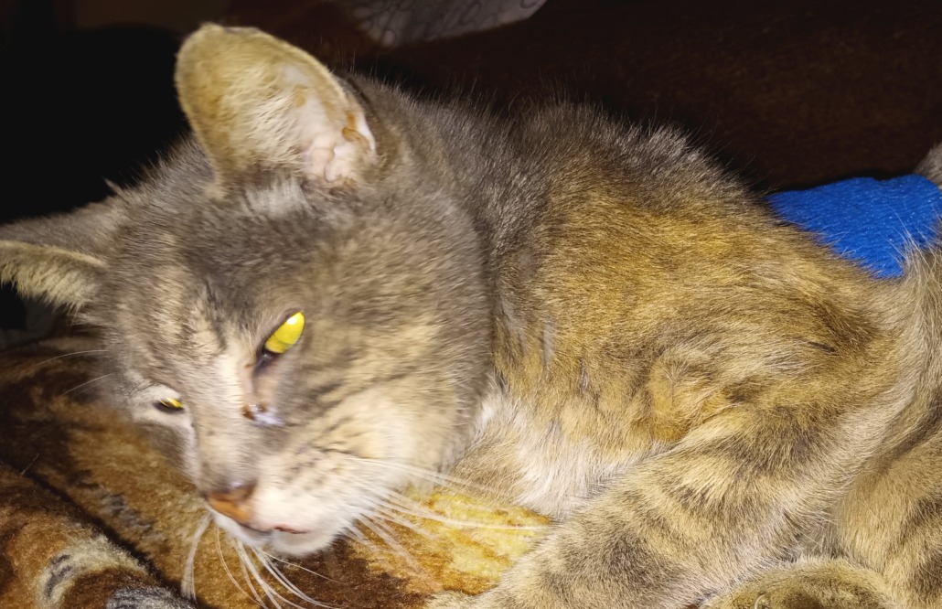 Found cat really skinny. He is older seems to be a house cat not one able to find food for himself.