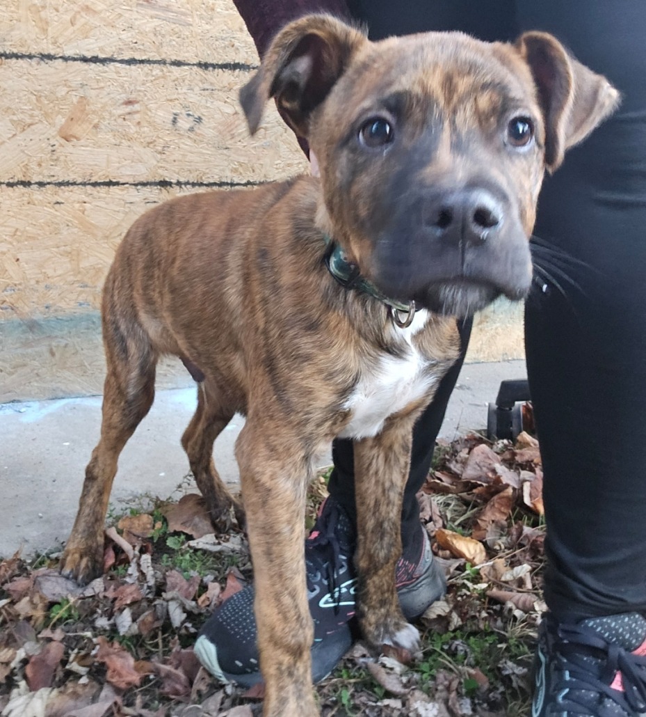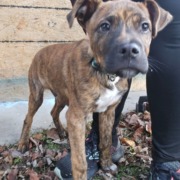 Young dog/puppy found at Lebanon Park. Brown, brindle pattern. Maybe boxer/bully mix.