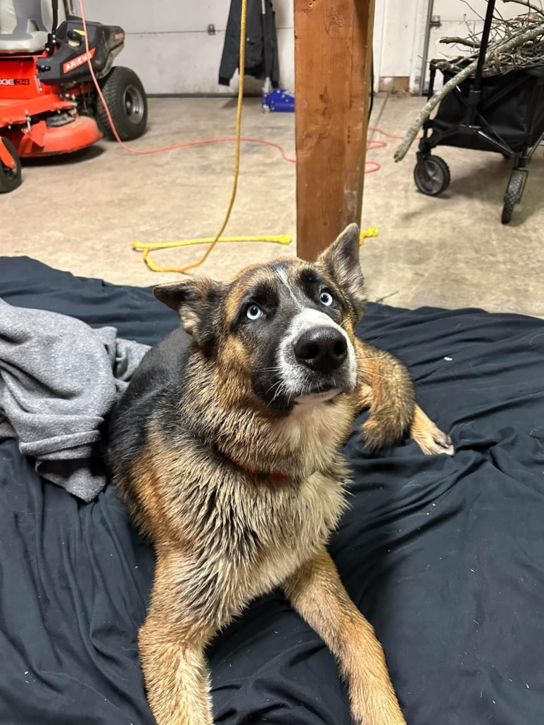 Blue eyed shepherd mix with orange collar found in Camby off of Ralston Road. Proof of ownership is required