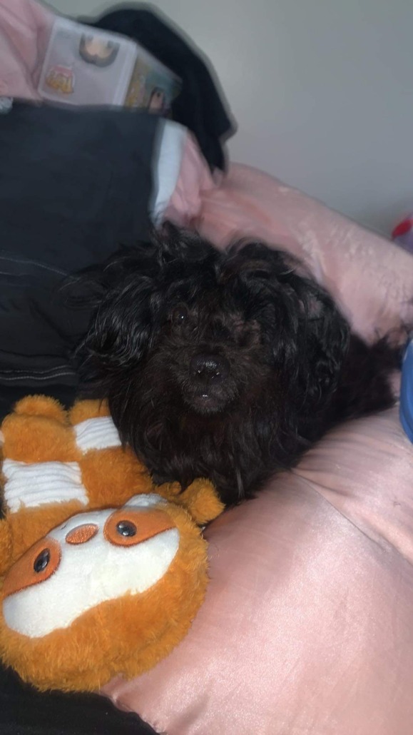 Small 5lb black Yorkie Poo- she is blind – only has one eye