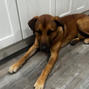 Found male dog. He’s been in and out of my yard in the trash. I let him in the morning to warm up. He’s friendly with my boys so far. I gave him a bath he smells very bad and his nails are really short from walking.