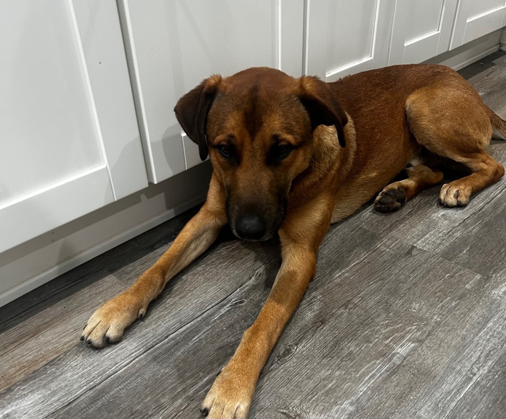 Found male dog. He’s been in and out of my yard in the trash. I let him in the morning to warm up. He’s friendly with my boys so far. I gave him a bath he smells very bad and his nails are really short from walking.