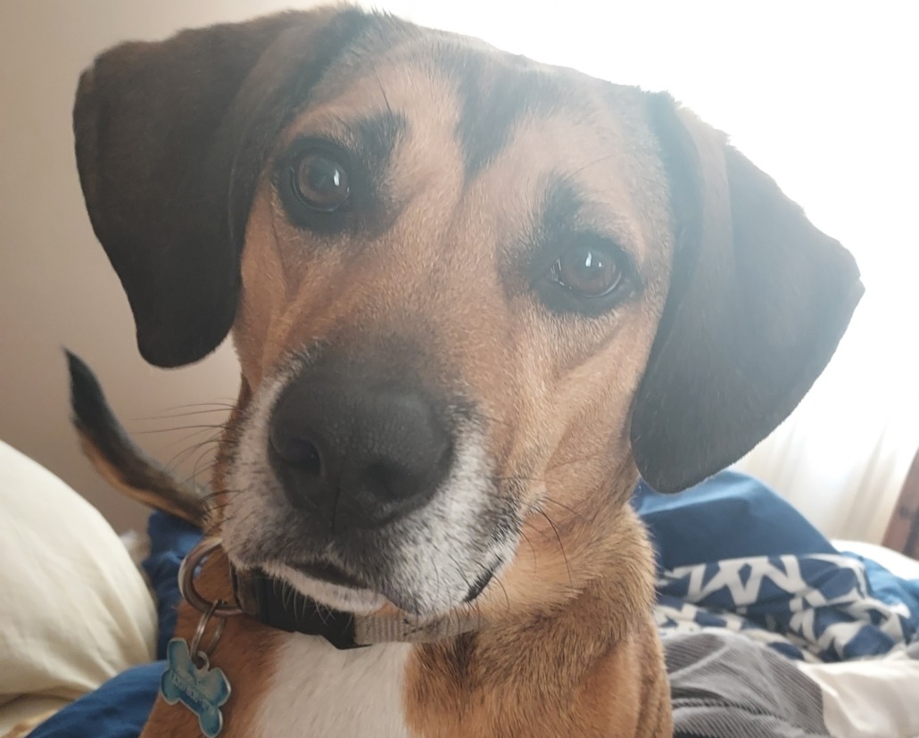 Carmel colored beagle mix. Friendly. Fence climber escaped from backyard near 79th and Hoover.