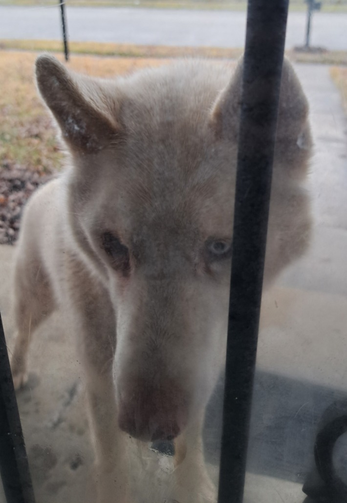 Looks to be a husky, I believe Male. I can’t let him in due to my dog going crazy. Has collar but no tags.
