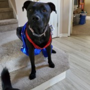 4 year old, female black lab mix. Answers to Jazzy. Skittish and loud but not aggressive.