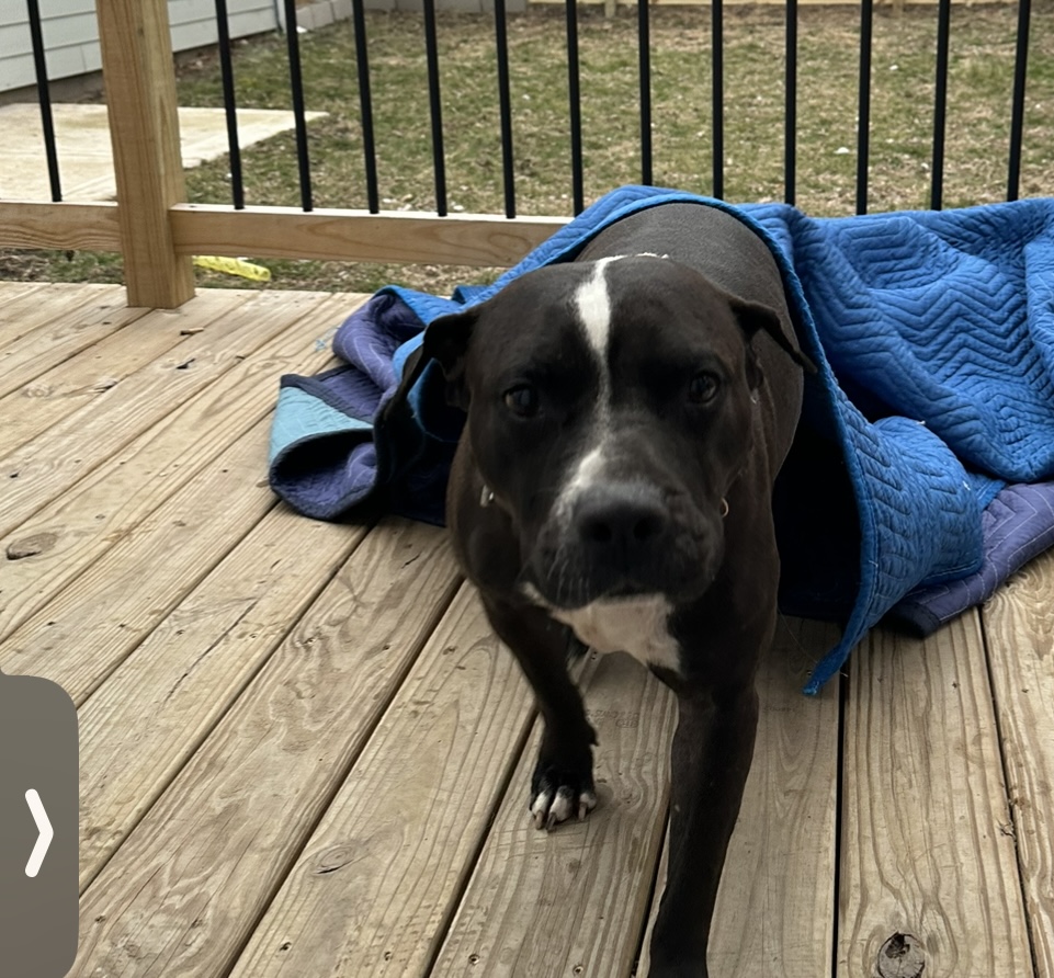 He is so friendly. Sweet boy mostly black with a stripe of white on his face.