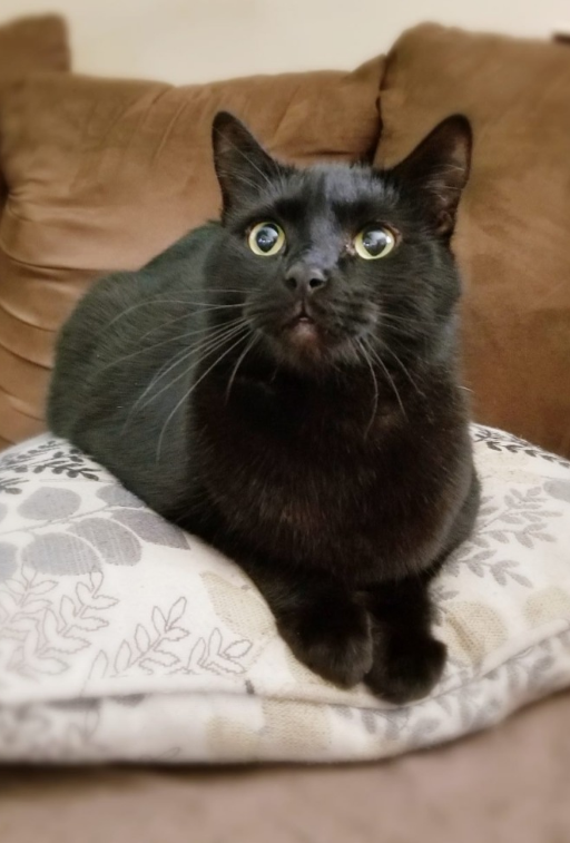 Very fat larger all black cat. Indoor cat not familiar with the outside. He got out back in 2021 and came home on his own after 2 weeks but not taking any chances. Very sweet and lovable. His tiny human is missing him terribly as are the rest of us. REWARD if found safe and brought home. Approx 8 years old
