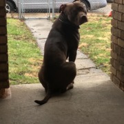 He is an extra large red nose pit, or some people get them confused with a chocolate lab. He’s neutered and is really friendly ghosts by Kane.