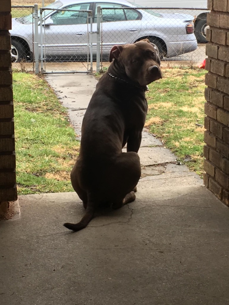 He is an extra large red nose pit, or some people get them confused with a chocolate lab. He’s neutered and is really friendly ghosts by Kane.