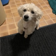 Small, friendly white dog found on 2/21/2024, Southside Indy, around Southport and 135 area. Proof of ownership required.
