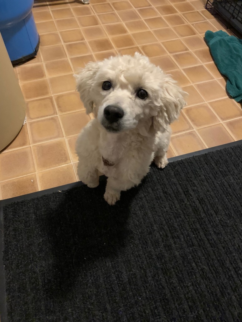 Small, friendly white dog found on 2/21/2024, Southside Indy, around Southport and 135 area. Proof of ownership required.