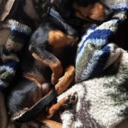 Male, Dachshund mix, 4 years old, black and brown markings, 15 pounds, bow tie tag, chipped
