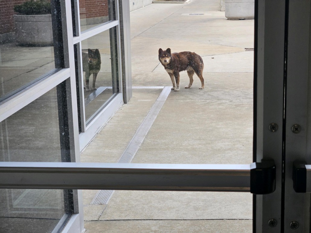 Brown dog. Had missing fur on back near tail.