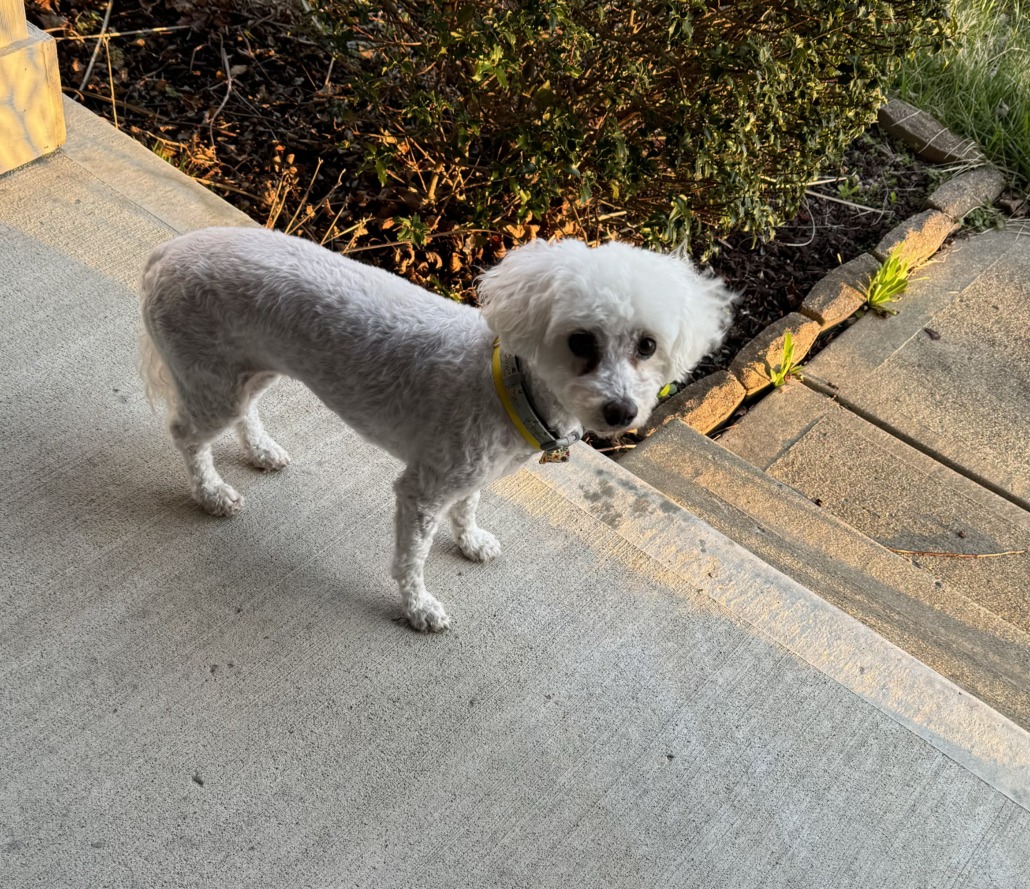 Poodle-y bichon?? Small white freshly groomed puppo in Hickory Mill in Avon.