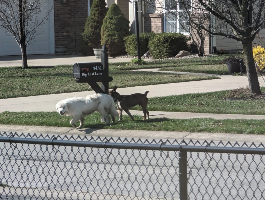 Yarmouth Way and Big Leaf Lane, Dogs were in Chessington Grove, Indianapolis, Marion County