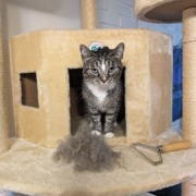 Rudy is fully grown but is very small, about 6.5 pounds. Extremely friendly and social, very food motivated and fairly vocal with a pretty high pitched voice. She has all of her claws and needs medicine for her ear infection