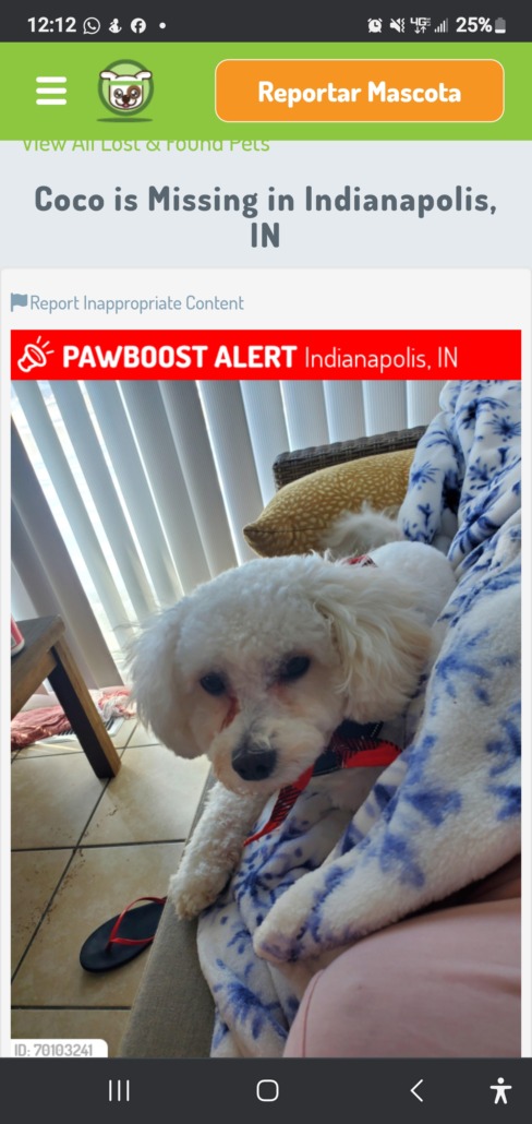 Lost Dog, Alert #69552 Coco missing near Georgetown, Indianapolis46222