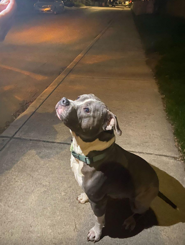 Sweet Pitt was found off of 12th and Rural Sunday night. Unfortunately was in a fight right after being rescued off the busy street. Need owner to call Animal Control if this is your babe. Green color no tags. Dark grey and white dog around 100lbs. Animal Control said they would see if microchipped hoping he was.
