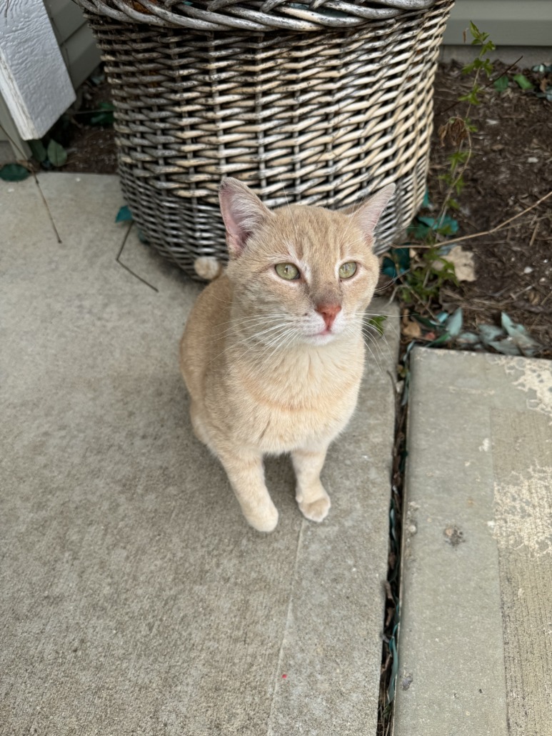 Walking around neighborhood, seems hurt on their tail/ear. Very gentle, is letting us pet them.