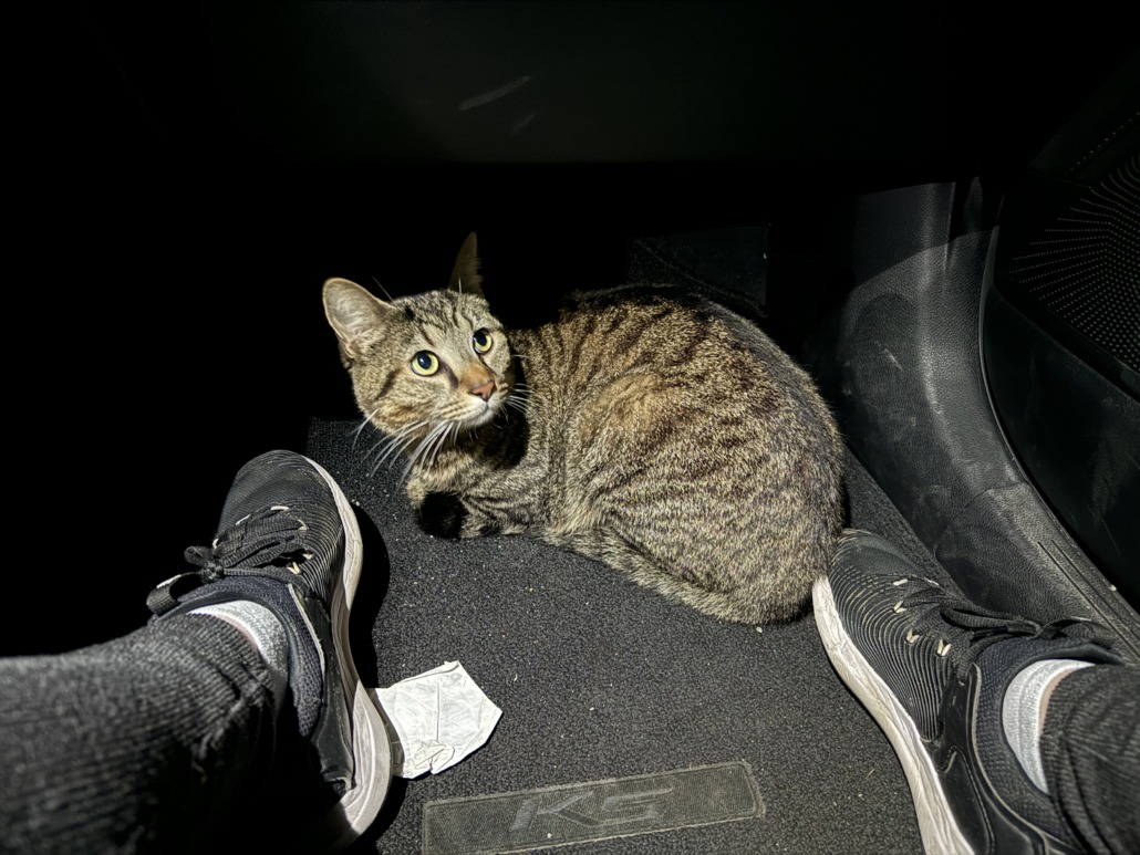 Brown tabby, I think female, but unsure. Found within Latitudes apartments.