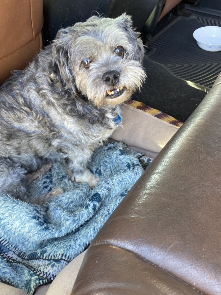 16 year old Pekingese / Shihtzu mix. Cataract n right eye, hard of hearing. weak back legs. I let him out into the back yard to use the bathroom.