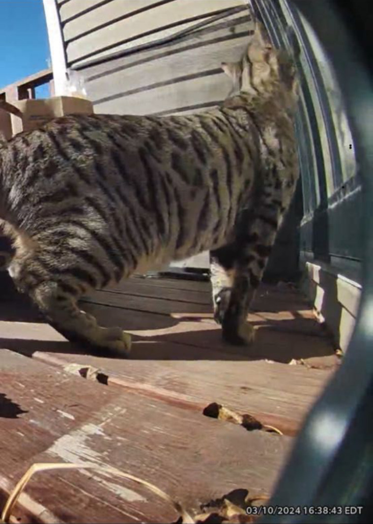 Leo is a golden brown bengal with stripes and spots he was last seen on march 10th at Ivanhoe and Gibson he went missing from the woods at grassy creek complex though please help us find him we just want to see him again