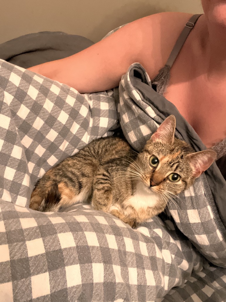 This cat was found in our front door. She is very friendly to the point she wouldn’t leave our home after finding me.