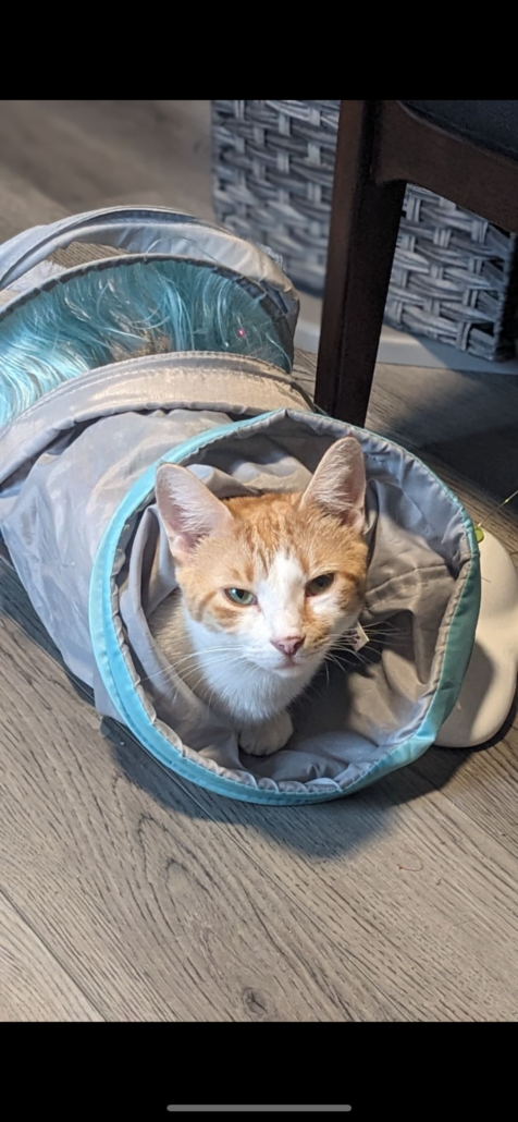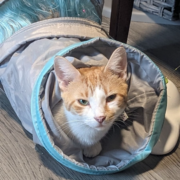 Small orange/white female cat. Approx 6lbs & 2 years old.