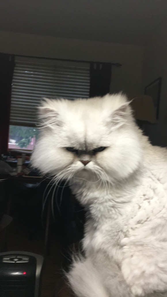 Long-haired shaded Persian. Green eyes He has front walls and they’re pretty sharp right now His hair is very long right now he’s due for a haircut. He has some matting underneath. He’s never been outside Got eaten up in the woods, but if anybody has a report of anything like this, Cat, please let me know. He disappeared right at my house in our neighborhood.
