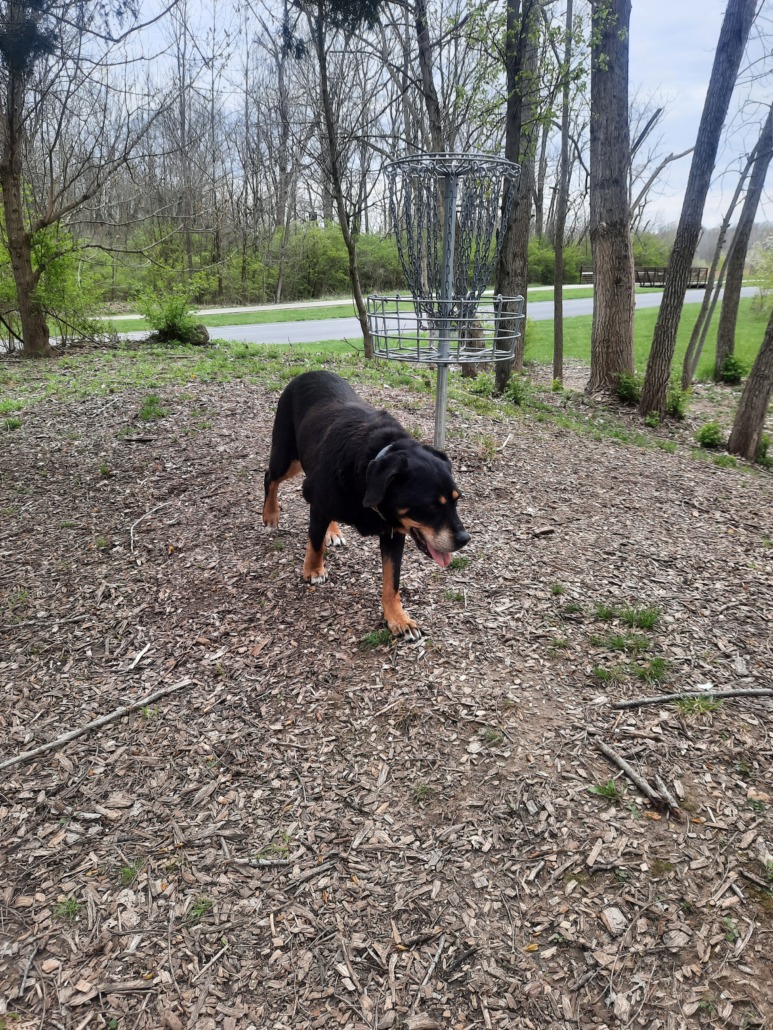 sweet girl, possible weak hind legs. Found at Washington township disc golf course
