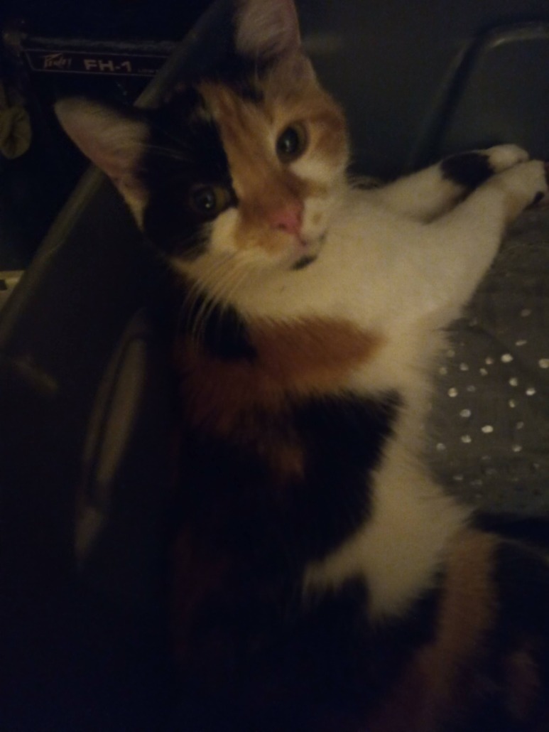She is a female calico her name is Cali she is a lil over 2 years old with yellow eyes