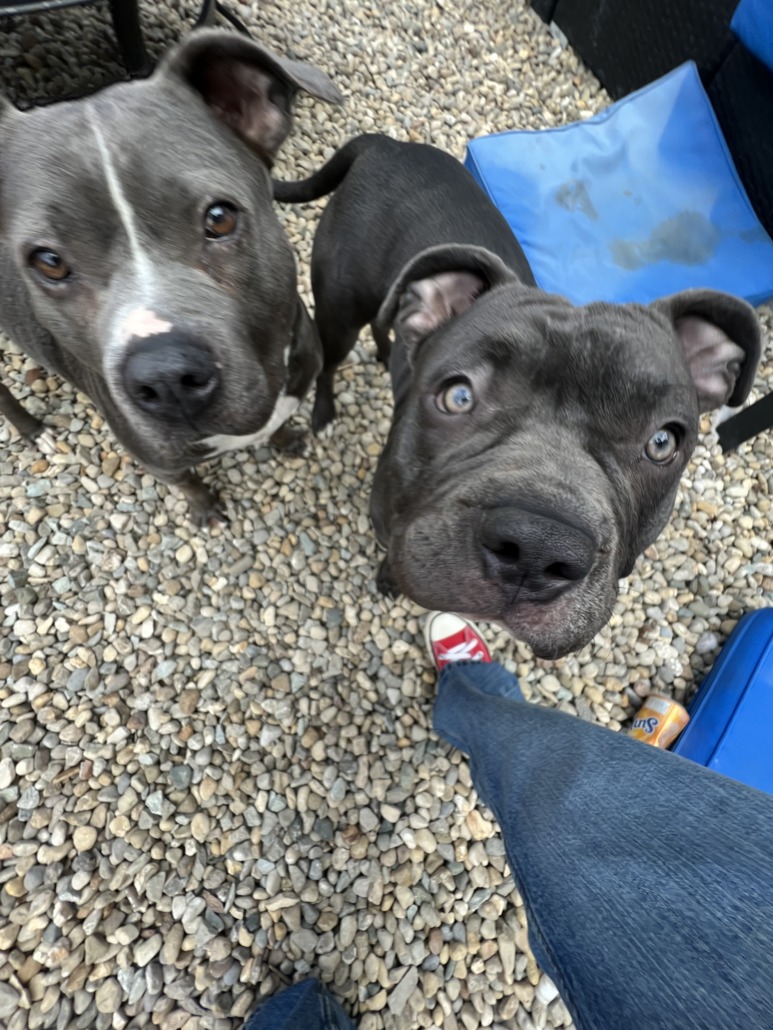 2 grey pitbulls, Name: Chubby,male,hazel eyes, 1 yr old